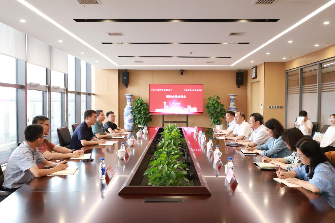 7月2日,河北经贸大学党委常委、副校长王重润带队赴雄安人行调研,就进一步深化银校合作展开座谈交流。中国人民银行雄安新区分行副行长高远出席,我校金融学院负责人和相关师生,以及雄安人行办公室、统计研究科、外汇管理科和货币信贷科等部门负责人参加。