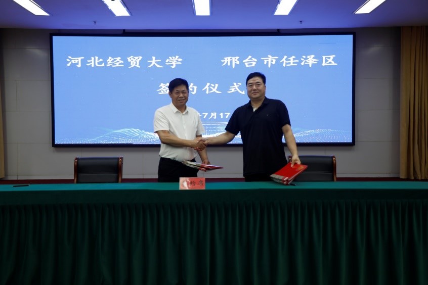 7月17日下午,我校与邢台市任泽区人民政府举行战略合作协议暨项目合作协议签约仪式。校党委书记刘兵出席并讲话,校党委常委、副校长杨金田,校党委常委、副校长田学斌,科研处处长王素贞,金融学院党委书记贾喜环,金融学院院长王重润,金融学院副院长范庆祝,金融学院副院长窦丽琛,任泽区委书记杨蕾,区委副书记、区长赵现科,区委常委、常务副区长周振鹏,区委常委、办公室主任董春雷出席。任泽区委副书记宋云主持签约仪式。