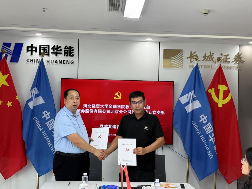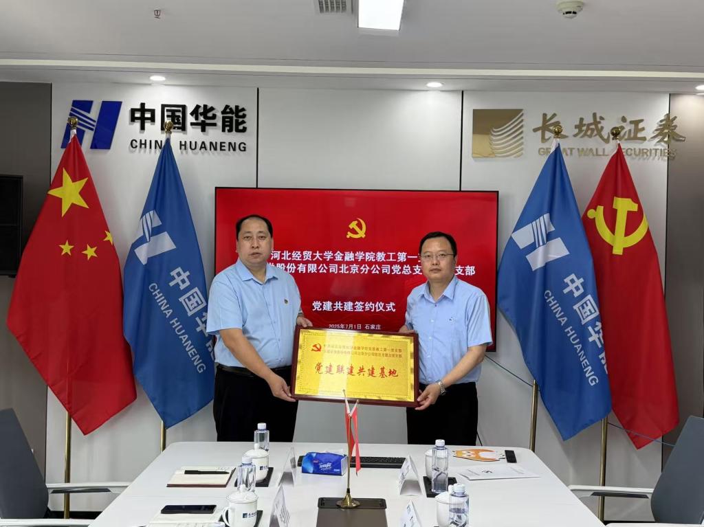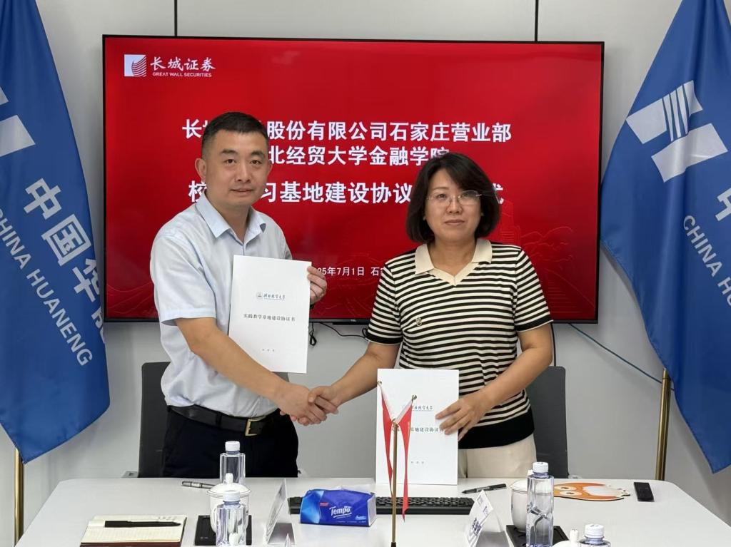 7月1日,金融学院与长城证券石家庄营业部以“党建+业务”双融双促为目标,围绕基层党组织联建、人才共育、资源共享等领域深化合作,共同签署党建结对共建、实践教学基地协议并举行授牌仪式。长城证券石家庄营业部总经理车凯磊、总经理助理闫红亮、机构业务部总监杜胜海、合规部经理蒋玉莲,金融学院党委书记魏健、院长杨雪美、副院长窦丽琛、办公室主任教工一支部书记李艳辉参加。