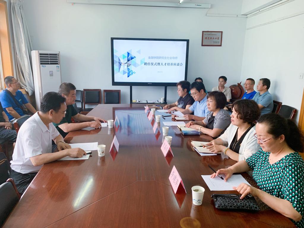 7月5日下午3点,金融学院在学院会议室举行了研究生社会导师聘任仪式暨人才培养座谈会。河北经贸大学党委常委、副校长程瑞芳、河北省金融学会秘书长、中国人民银行石家庄支行金融研究处处长郑向阳、中国工商银行河北省分行副行长王琦以及金融学院领导班子成员及研究生导师代表参加了会议。