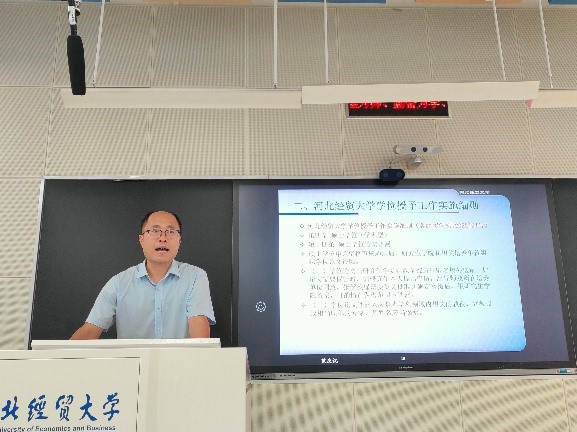 三是,《河北经贸大学硕士研究生导师管理办法》(冀经贸研〔2022〕19 号)。范院长重点介绍了博士学位青年教师和博士学位副教授的导师任职资格条件、导师资格的评审、导师的聘任、导师的考核。其中重点强调在学术不端行为、学位论文外审、答辩、抽检未通过等方面实行一票否决。