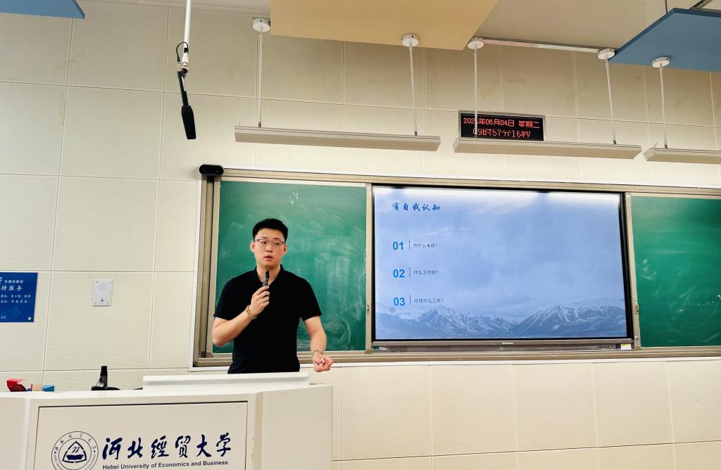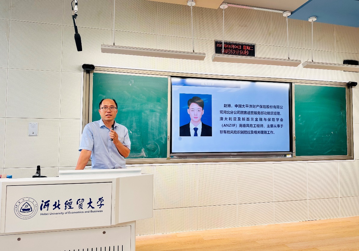 6月4日,我院邀请优秀校友、中国太平洋财产保险股份有限公司河北分公司团客运营服务部功能区经理、澳大利亚及新西兰金融与保险学会(ANZIIF)高级风险工程师赵博为学院学子做了一场关于金融保险行业职业生涯规划的辅导讲座。研究生100余人参加了本次讲座,讲座由副院长范庆祝主持。