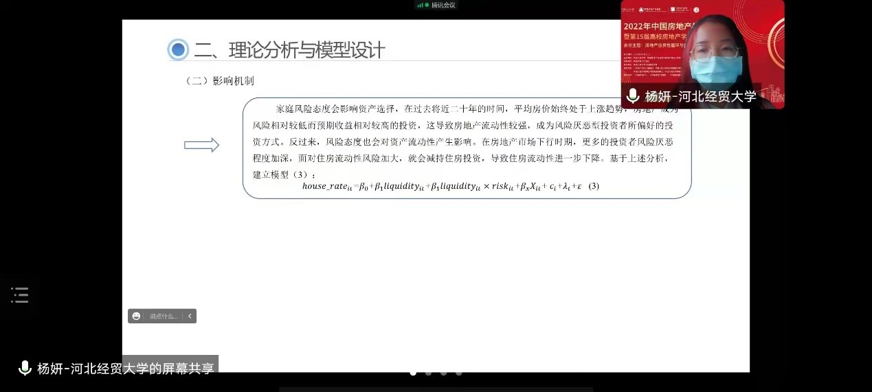 (图为杨妍在2022年中国房地产学术年会暨第15届高校房地产学者专业研讨会汇报截屏)