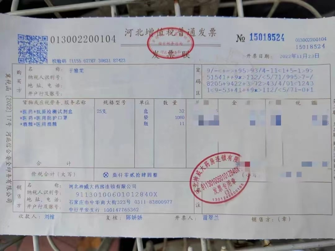 通过王院长和于雅雯的聊天记录可知,于雅雯经过询问、比较多个防疫物资购买渠道中的防疫产品,最终在神威药房购得这批物资。这批物资中包括一箱酒精手喷消毒液、两箱口罩和两箱抗原。这些抗疫物资有效缓解了我院防疫物资紧缺的问题,使防疫这张大网织的更密、更牢,有利于守护好我院在校师生的生命安全防线。