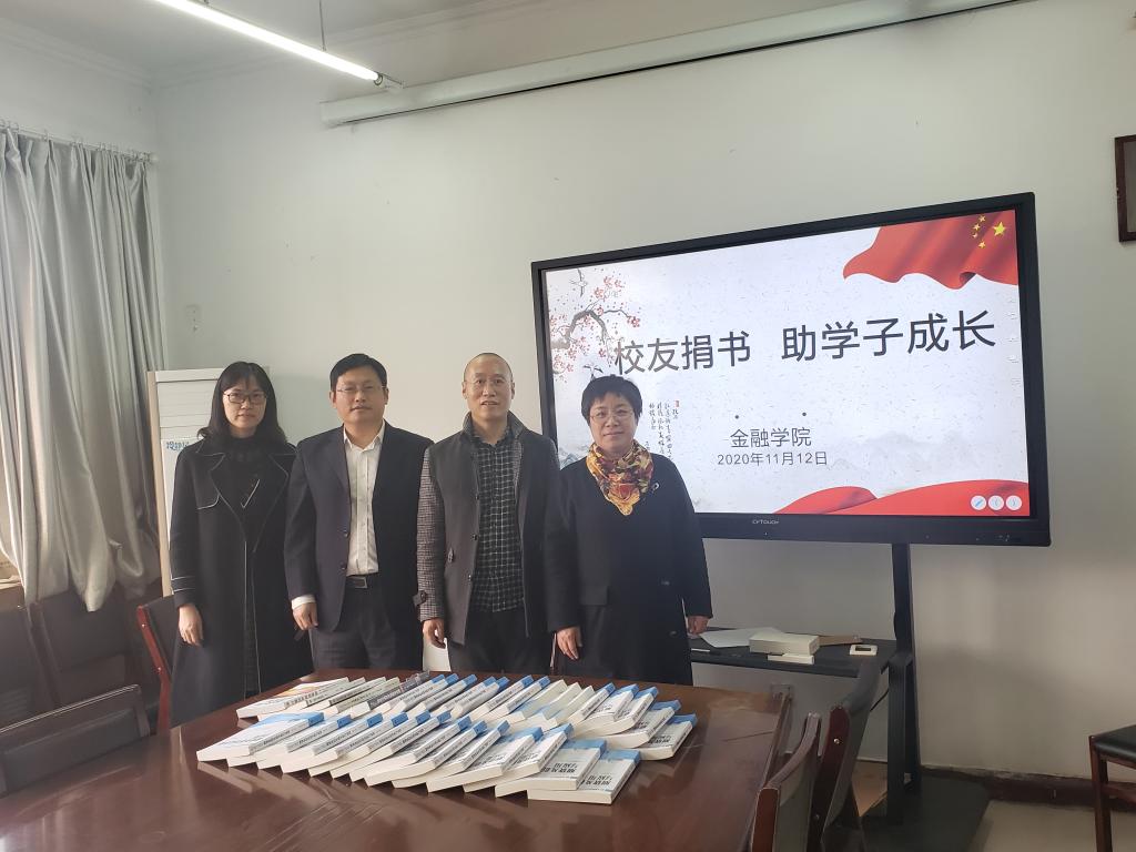11月12日下午,2003届毕业生--永安期货石家庄营业部总经理王吉元重返母校捐赠图书,金融学院于学院会议室举办了简短而热烈的捐书仪式。金融学院院长王重润、副院长刘颖、副院长杨雪美出席捐书仪式。