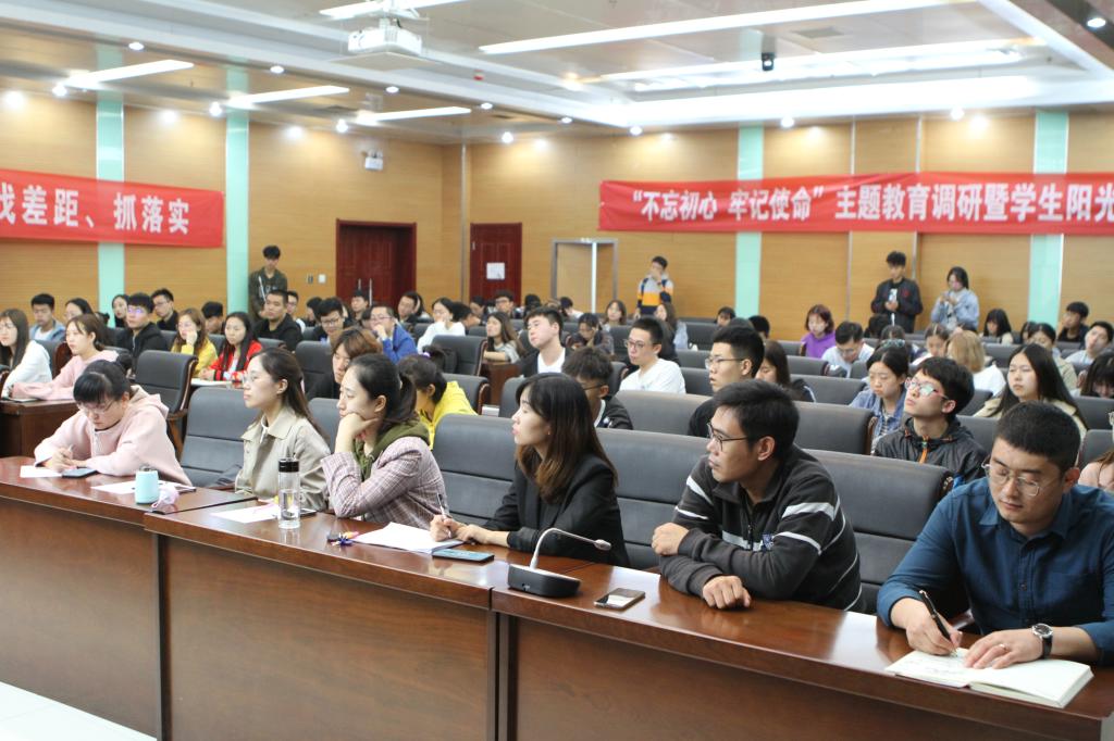 10月10日,金融学院在学校第三会议室召开“不忘初心,牢记使命”主题教育调研暨学生阳光对话会。学院党委书记贾喜环,院长王重润,副院长刘颖、杨雪美出席,学院分管党务、教学、科研、学生、就业、征兵、心理、助困、征兵等工作的老师、100余名学生代表参加,会议由党委副书记王冬坡主持。