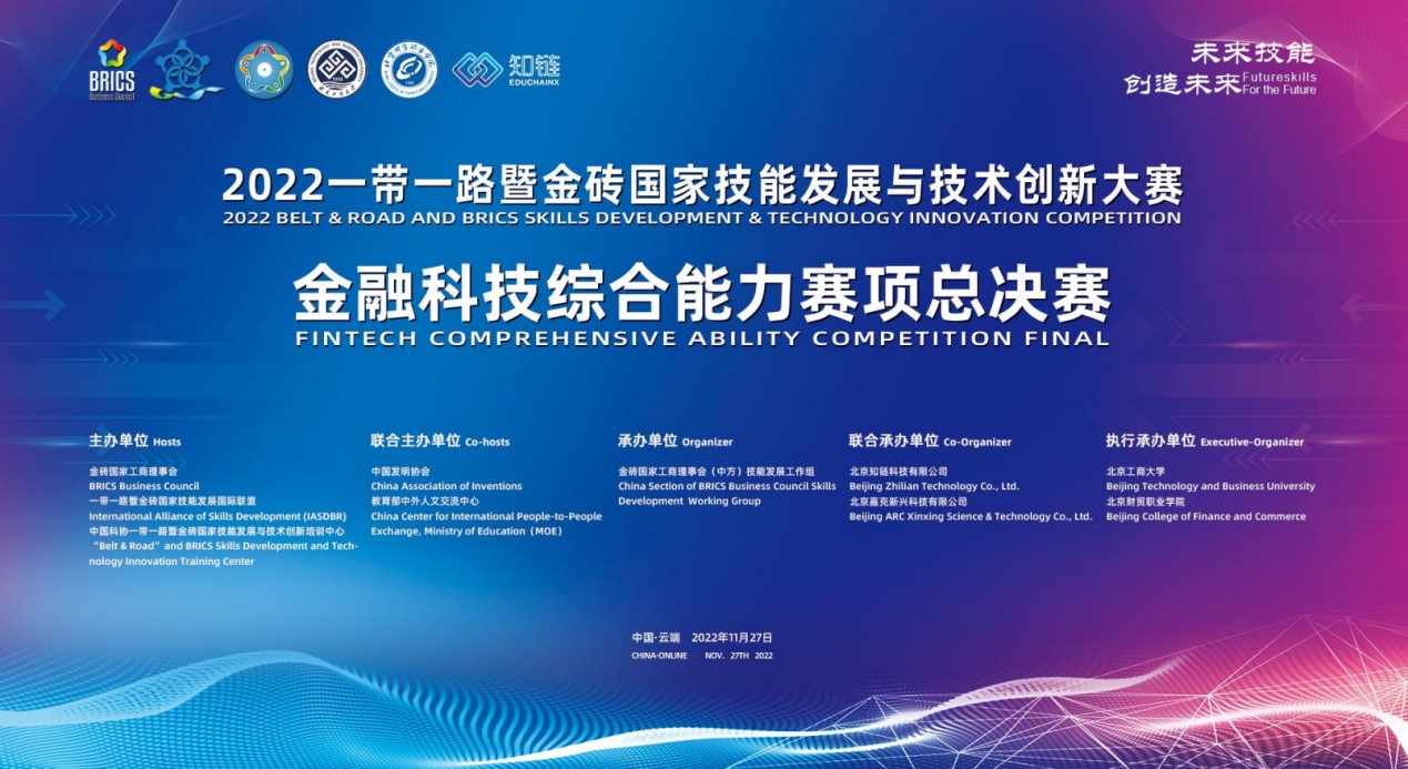 “一带一路暨金砖国家技能发展与技术创新大赛”是金砖五国最高领导人认可的、政府间国际组织金砖国家工商理事会批准的国际竞赛,2017年首届举办,五年来,累计13万余人次参与了竞赛及相关会议、展览展示、技术交流等活动,成为推动金砖国家间教育合作、技能开发和人文交流活动的重要平台。作为该大赛的核心赛项之一,金融科技综合能力赛项自9月启动以来,受到了社会各界的广泛关注与全国高校的积极响应,陆续在北京、山东、江苏、湖北、河北、广东等二十余省区举办省赛。各高校参赛队伍通过在校内赛、省赛激烈的角逐,最终,来自全国不同高校的近120支代表队在总决赛的现场齐聚一堂,通过分布式云端竞赛的方式参加总决赛。