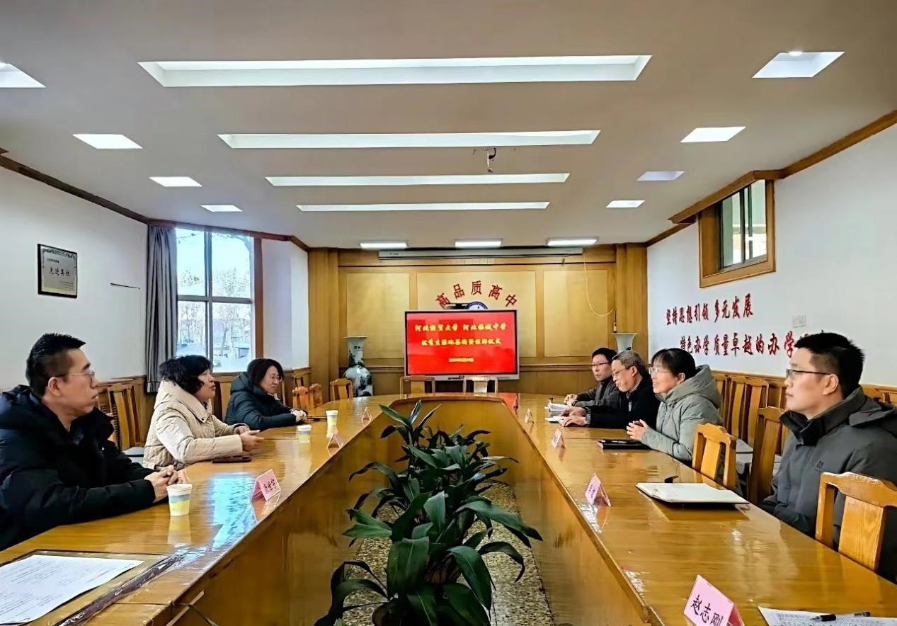 鲁振云校长详细介绍了临城中学的发展历程、办学目标和教育理念,对河北经贸大学同仁的到来表示热烈欢迎和衷心感谢,希望加强与河北经贸大学的交流与合作,提升临城中学的办学质量和教学水平,实现高中与高校的良好对接和共同发展。她表示,临城中学将以此为契机,不断提高教育教学质量,为高校培养和输送更多优秀人才。