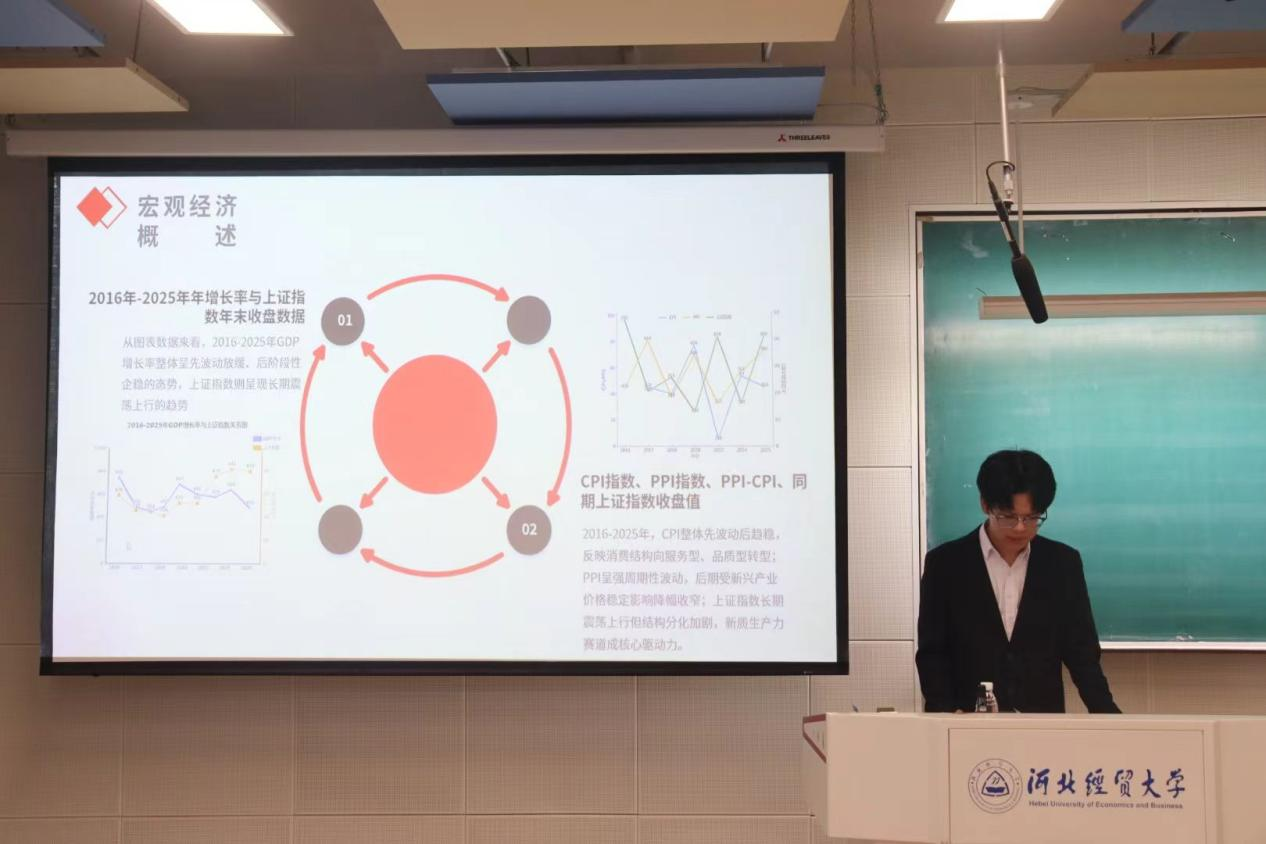 大赛于2025年9月启动,历时两个多月,分设个人赛与团体赛两部分:个人赛以2025年10月31日模拟交易平台闭市时的统计数据为依据,按总收益资金从高到低排序确定获奖个人;团体赛则结合投资分析报告评审与最终答辩成绩综合确定排名。来自河北经贸大学、河北农业大学、河北地质大学等高校的六支代表队晋级团体决赛。