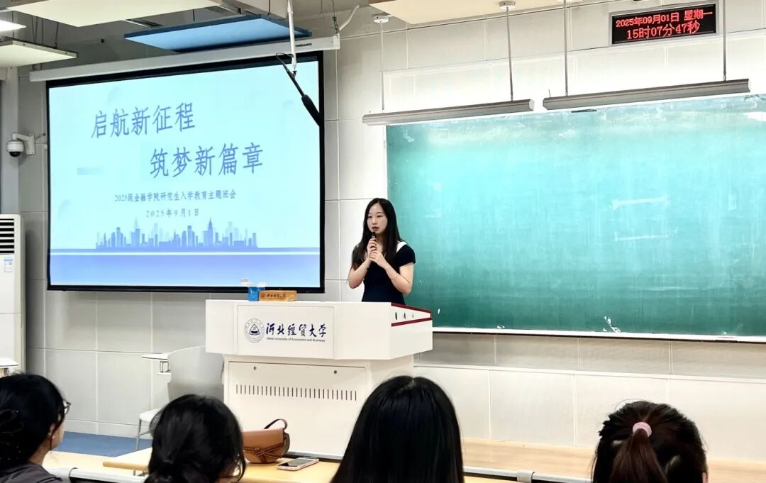 为帮助新生更快地适应研究生生活,明确新学期新阶段的目标,2025年9月1日,金融学院开展了一场研究生入学教育主题班会。本次班会以“启航新征程,筑梦新篇章”为主题,由研究生辅导员王一帆老师组织,刘婉丽老师出席。金融学院2025级研究生新生参加。