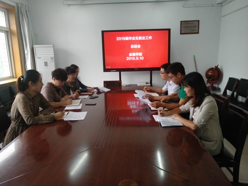 9月10日上午,金融学院在学院会议室召开2019届毕业生就业工作总结会,全体辅导员参加,会议由党委副书记王冬坡主持。