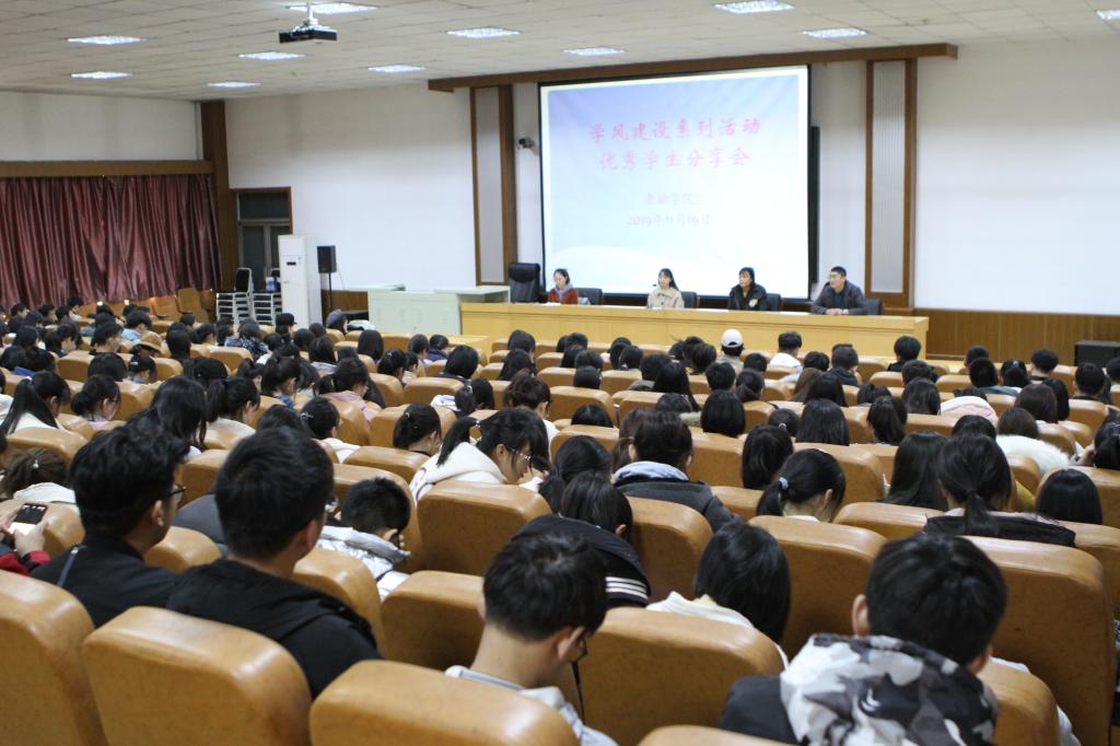 11月19日,金融学院于第三教学楼C201举办学风建设系列活动之优秀学生分享会,团委书记李德海主持,2019级全体同学参加活动。