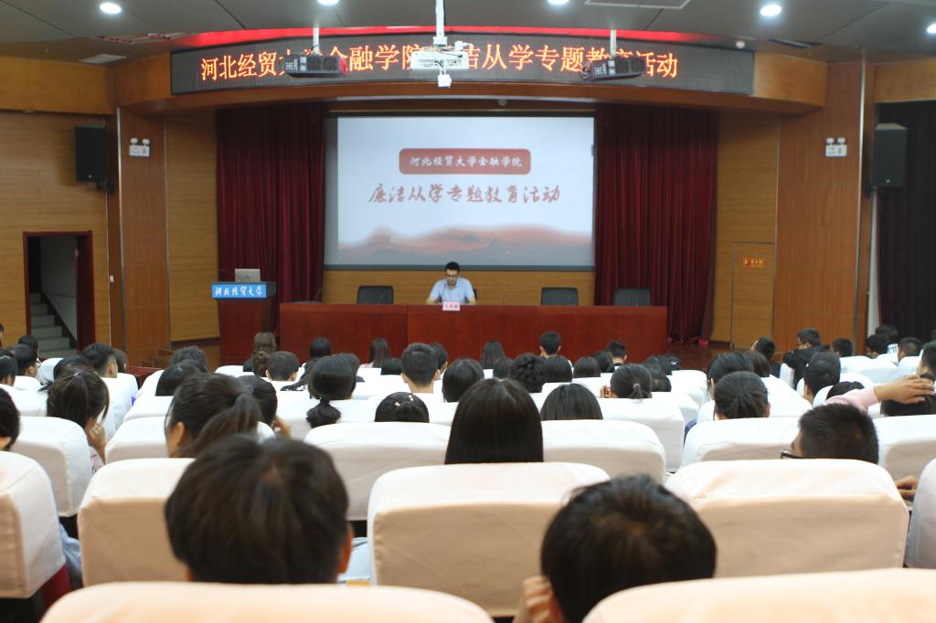 9月12日中午,金融学院在国际学术报告厅开展“廉洁从学”专题教育活动,金融学院党委书记王冬坡出席并主持活动,院学生会全体成员及2019级全体新生参与活动。
