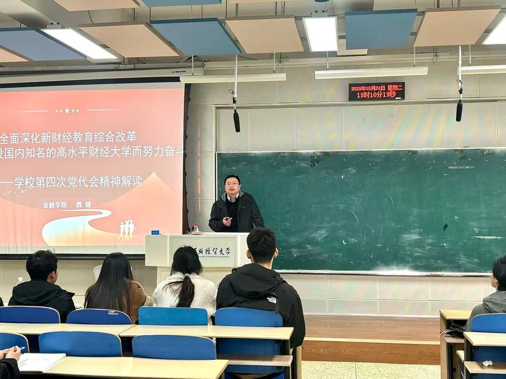 2025年10月21日,河北经贸大学金融学院党委书记魏健讲授了一场主题为“全面深化新财经教育综合改革,为加快建设国内知名的高水平财经大学而努力奋斗”的党课,金融学院100余名入党积极分子参与了此次党课。此次党课旨在深入解读学校第四次党代会精神,探讨如何在新时代背景下推进教育现代化,加快建设国内知名的高水平财经大学。