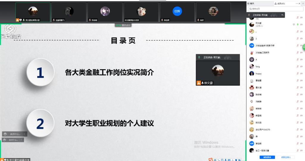 讲座聚焦金融行业发展现状,为同学们学业和职业规划做相关指导。邢文豪详细讲述了金融领域各行业发展现状和岗位设置情况并结合自身的职业发展经历给大家提出了指导意见,希望同学们能够结合自身情况在认清行业发展形势和岗位成长性的基础上理性做好学业和职业规划,积极做好步入社会前的就业准备。